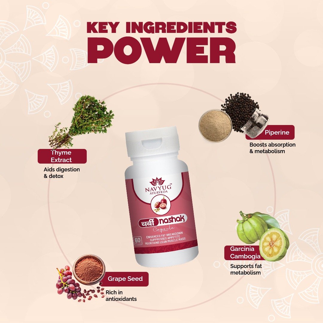 Charbi Nashak Capsules are a powerful Ayurvedic weight loss supplement that helps burn fat naturally, boost metabolism, and control appetite. Made with herbal ingredients like Garcinia Cambogia and Piperine, this natural fat burner targets belly fat, reduces cravings, and supports healthy weight management.
