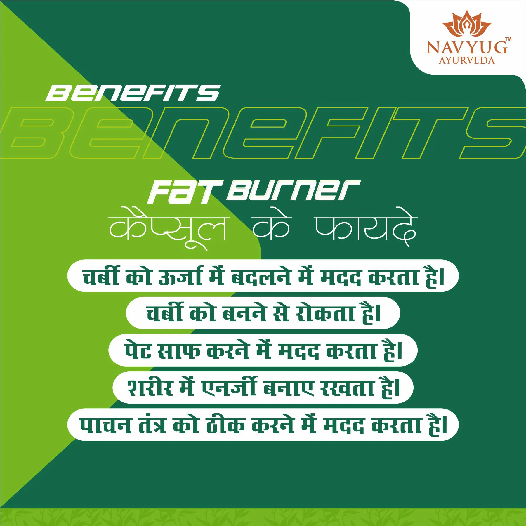 Fat Burner Capsules by Navyug Ayurveda are a powerful Ayurvedic weight loss supplement designed for natural fat reduction. Enriched with Garcinia Cambogia and Green Coffee, it helps boost metabolism, burn stubborn belly fat, and support healthy weight management.